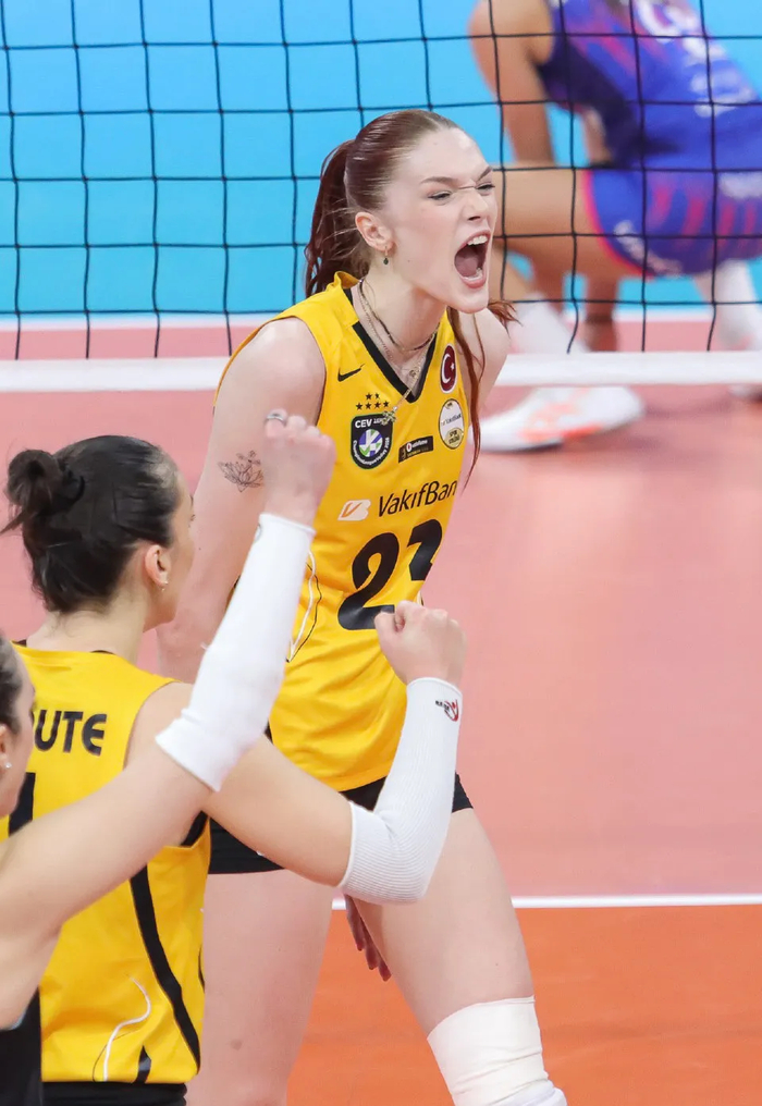 反观瓦基弗银行,展现出了顶级豪门的韧性与调整能力。核心马尔科娃前两局慢热状态不佳,却能快速调整心态,越打越勇,逐渐接管比赛。主帅古德蒂的排兵布阵堪称精妙,特意安排替补球员为马尔科娃轮休后排,让她保存体力专注进攻,决胜局中马尔科娃体力充沛,独揽8分成为制胜功臣,进攻效率远超体能透支的埃格努。法国国手卡绍特同样发挥惊艳,以69%的超高扣球成功率斩获19分,成为马尔科娃最得力的帮手,两人联手撑起了球队的进攻体系。